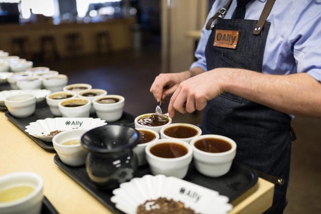 You use 5 cups for each sample, and separate the samples into groups. Cupping is always done blind, meaning you know nothing at all about the coffee, which helps reduce bias and predispositions. The steps of cupping are as follows: